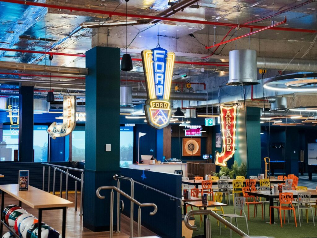 Fancy a bit of friendly competition? Roll some strikes at the classic bowling lanes, unleash your inner gamer with exciting arcade challenges, or take aim with interactive darts. Golf lover? The high-tech golf simulator will have you swinging like a pro!