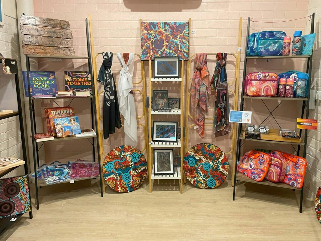 Nhuralama’s Shop is a bright space for customers to engage with and purchase art and cultural items, moving beyond online shopping to foster a personal connection to culture and community.