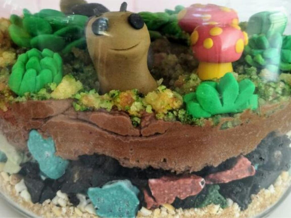 In this session, participants will learn how to create and personalise their layered edible terrarium, work with fondant to shape adorable animals and plants, mix colours and master simple sculpting techniques, pipe buttercream like a pro, colour cake crumbs for texture and most importantly crush biscuits with a rolling pin (it’s as satisfying as it sounds!)